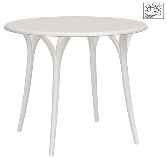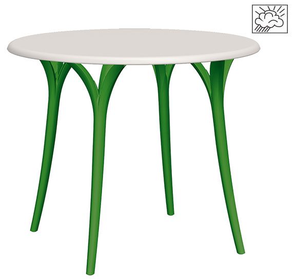 La mesa incluye regatones internos de polipropileno, apta 100% para uso exterior por su resistencia a rayos UV y ambiente salino.