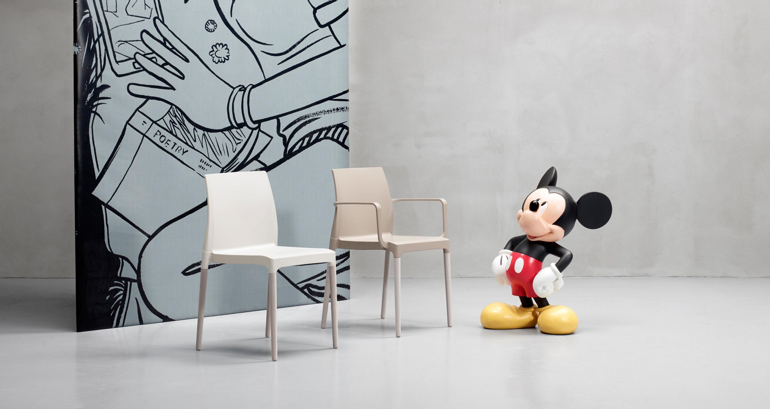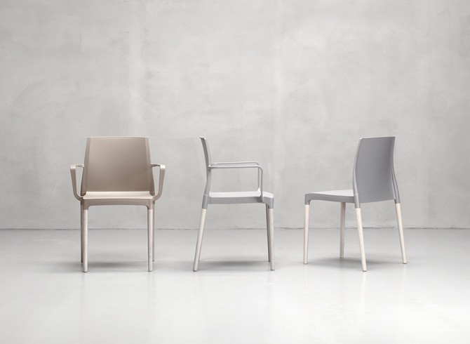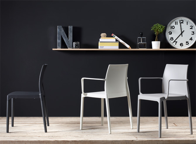 Chloe es una colección de sillas para uso interior y exterior según el acabado en la base. El cuerpo de la silla es en tecnopolímero reforzado con fibra de vidrio, diseñado para garantizar su durabilidad y funcionalidad.