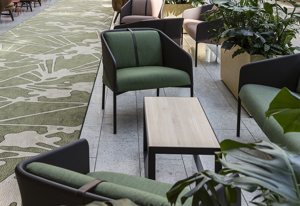 Los diseñadores Quaglio Simonelli son los responsables del diseño este elegante sofá, de líneas suaves y tapizado bitono, la comodidad está garantizada por un asiento profundo y grandes cojines.