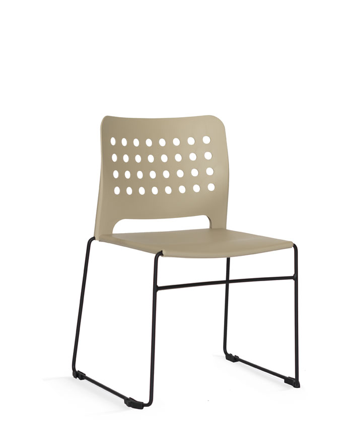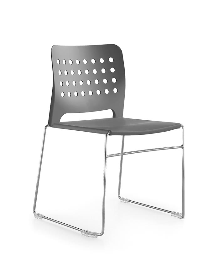 Holes es un silla en polipropileno de alta resistencia y estructura de acero. Versátil por sus múltiples características como : es apilable, con opción de brazos o sin brazos, con 5 colores a escoger para asiento/respaldo y la base hecha de acero puede ser pintada en negro, blanco o acero cromado.