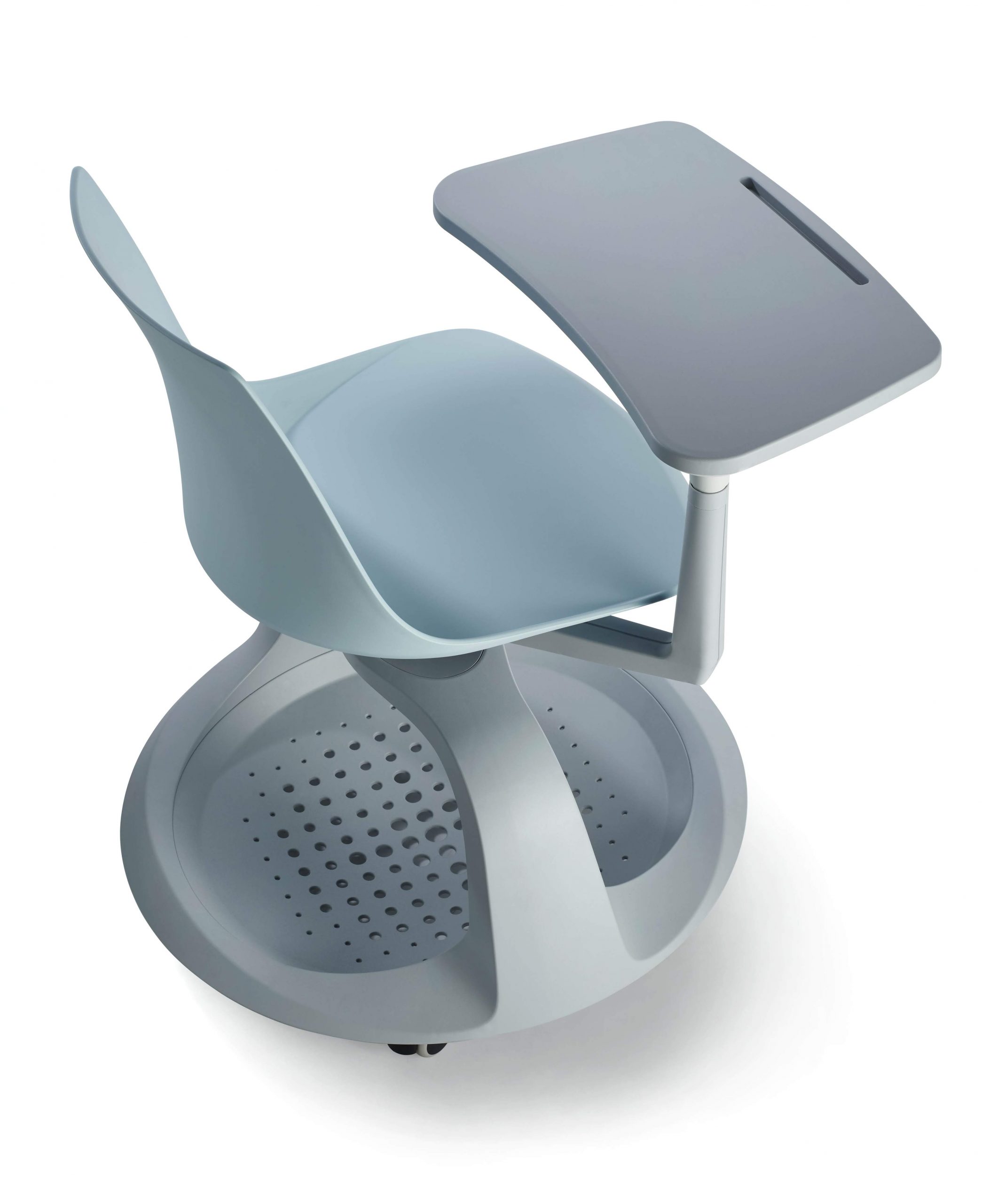KLC Edu es una silla «monoshell» de polipropileno diseñada para crear numerosas soluciones personalizables. La versión educativa consta de una base giratoria de 6 ruedas duales con altura de 23cm con doble función, como resguardo de libros o artículos personales, en color gris claro o antracita. Además de un robusto brazo giratorio con tableta fabricada en polipropileno de alto impacto con ranura para Ipad. Ideal para uso escolar, salas de capacitación o salas de juntas tipo brainstorm.