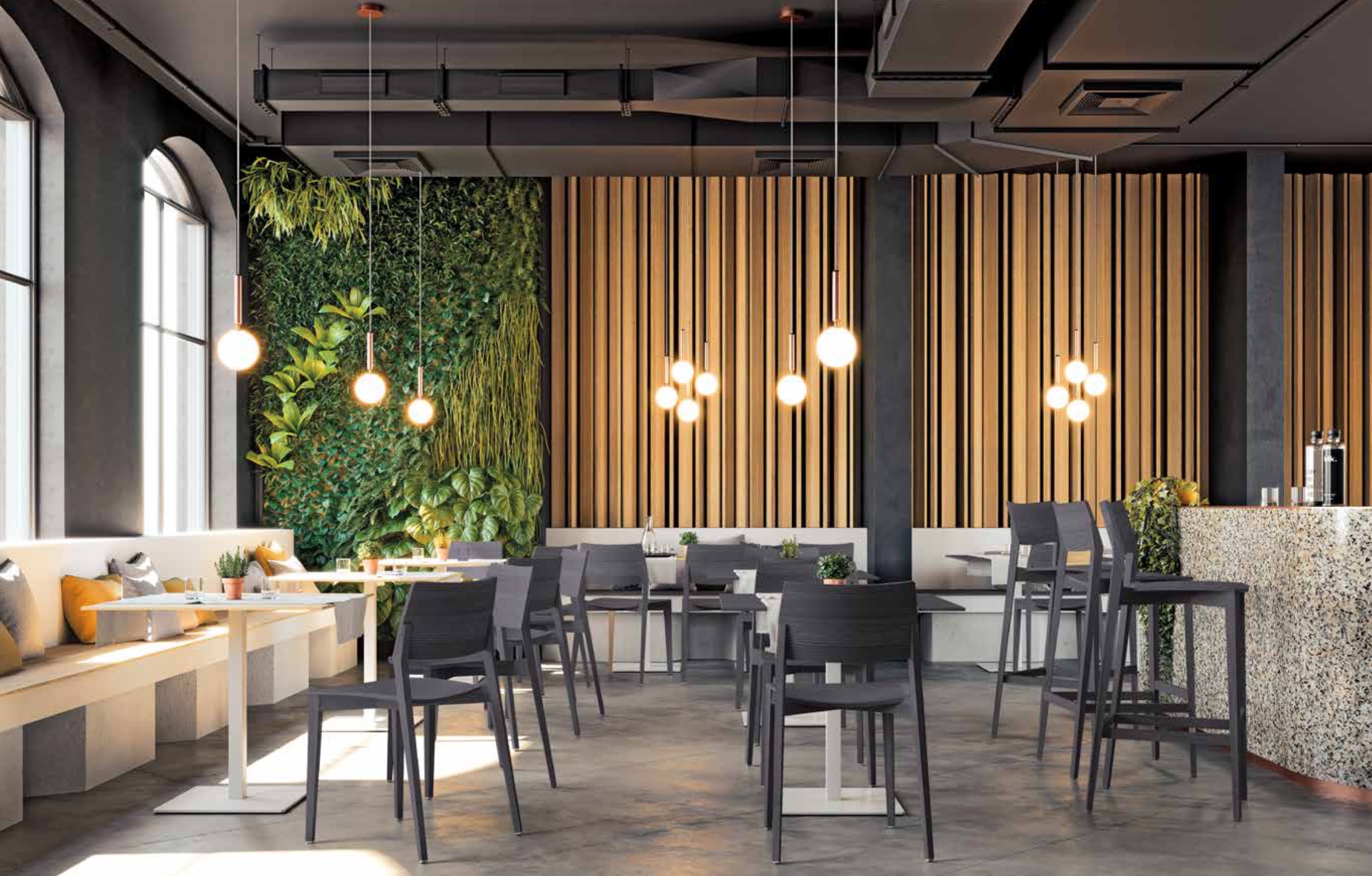 Salas de conferencias, cafeterías y áreas públicas son el principal destino de Ligno, gracias a la posibilidad de apilar la silla, esta silla es práctica, atractiva y con mucho estilo.