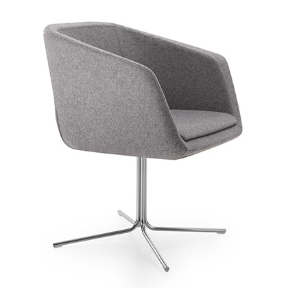 Con estructura de acero, totalmente moldeada en poliuretano inyectado en frío. La mas alta tecnología en fabricación de estructuras y poliuretanos para sillas y sillones de uso contract esta implícita en el sillón Meg.