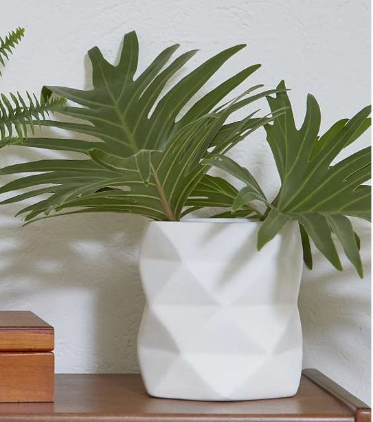 Su diseño presenta una serie de triángulos facetados en relieve, lo cual le confiere un aspecto sofisticado y contemporáneo.