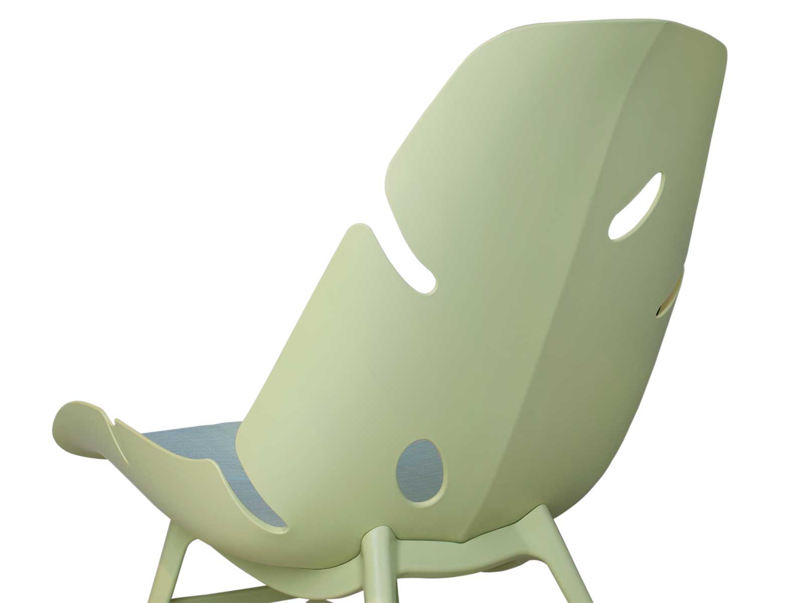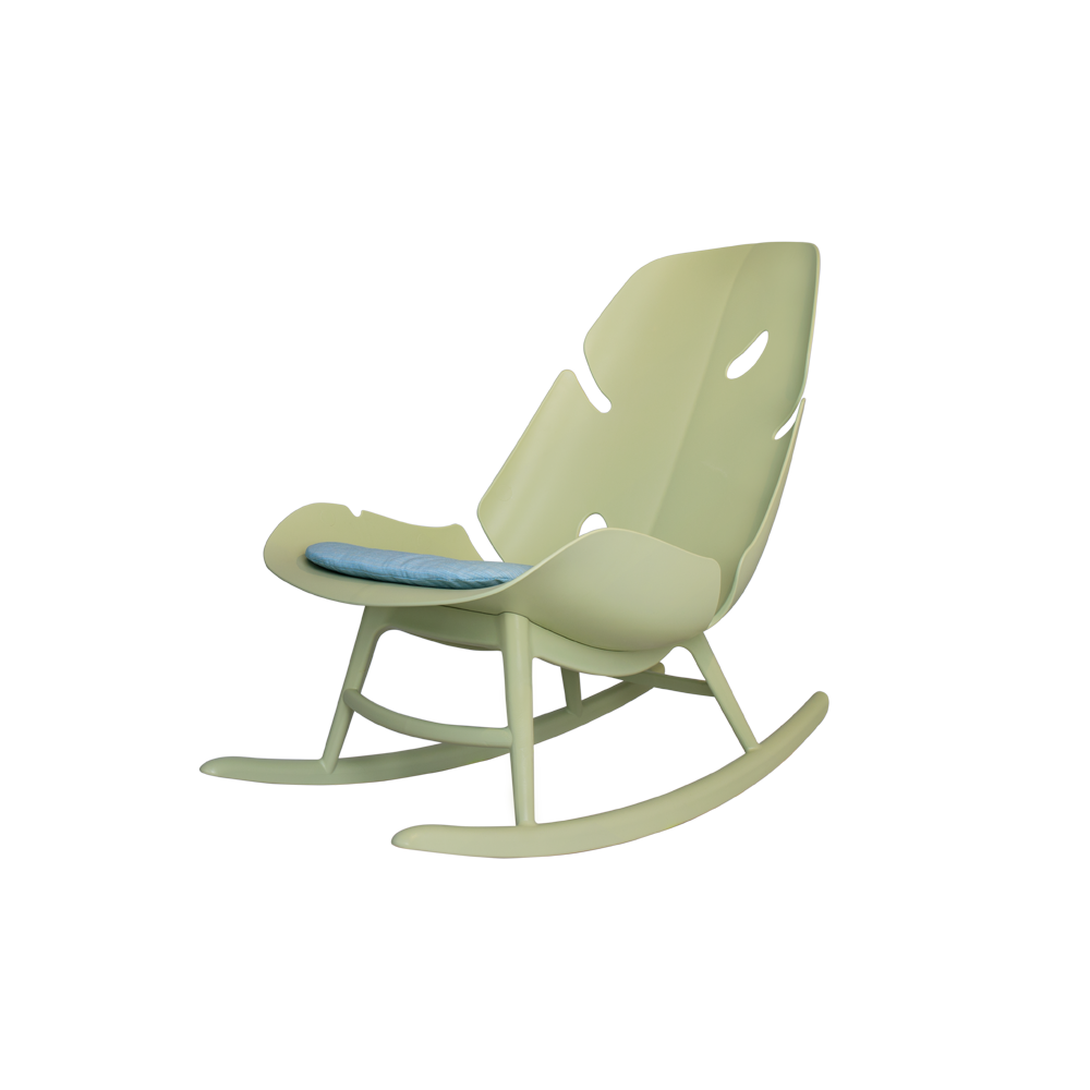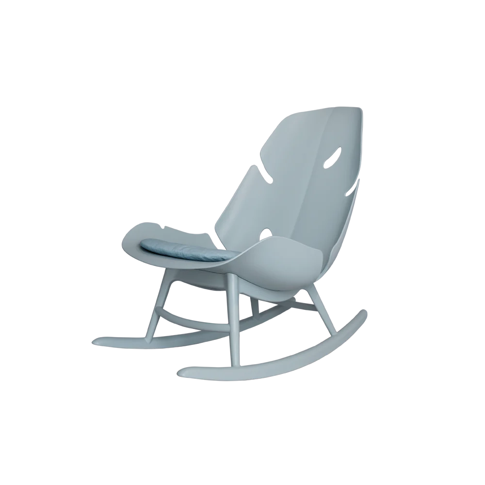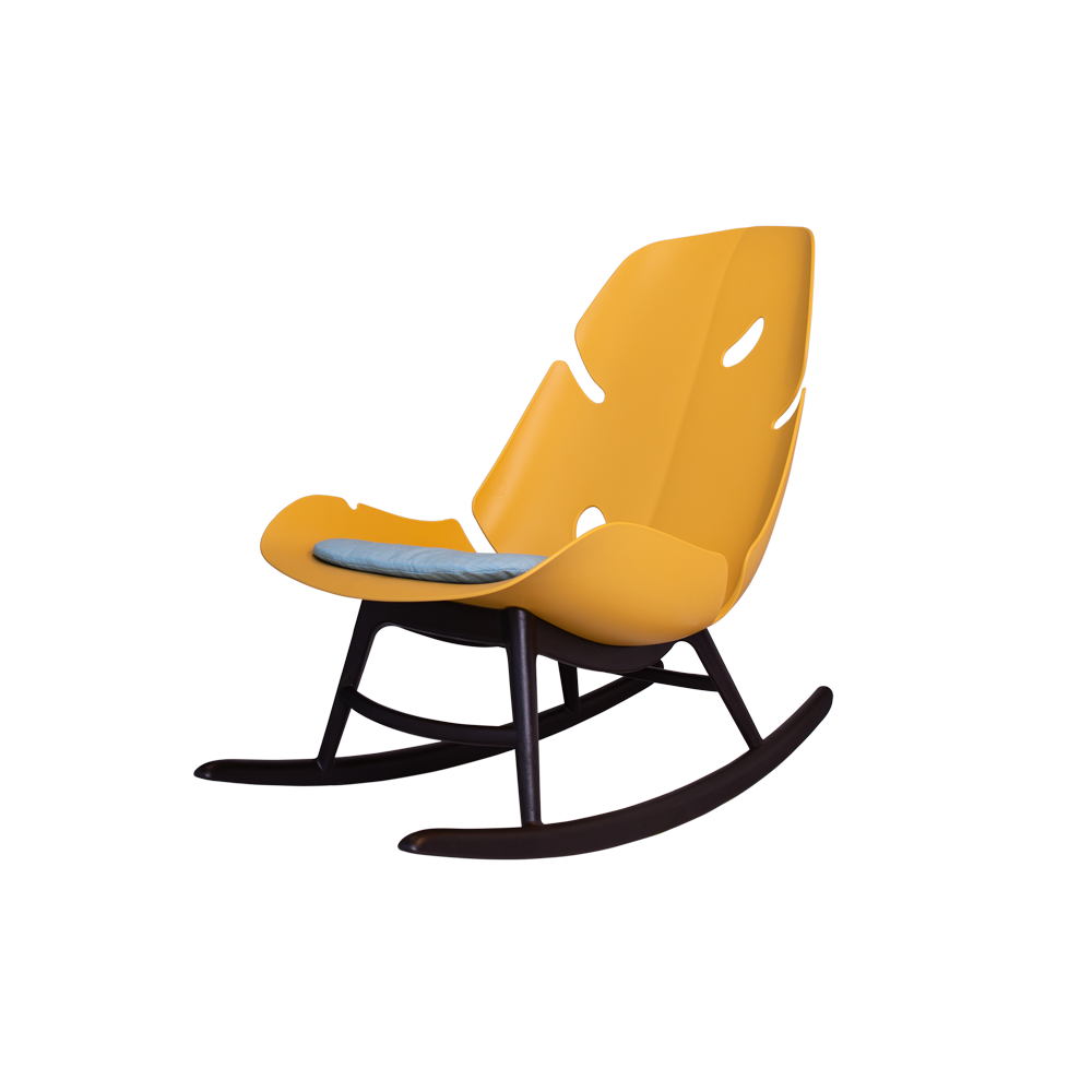 Los elementos de diseño de la silla Monstera versión mecedora se derivan de su nombre y forma