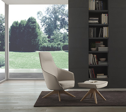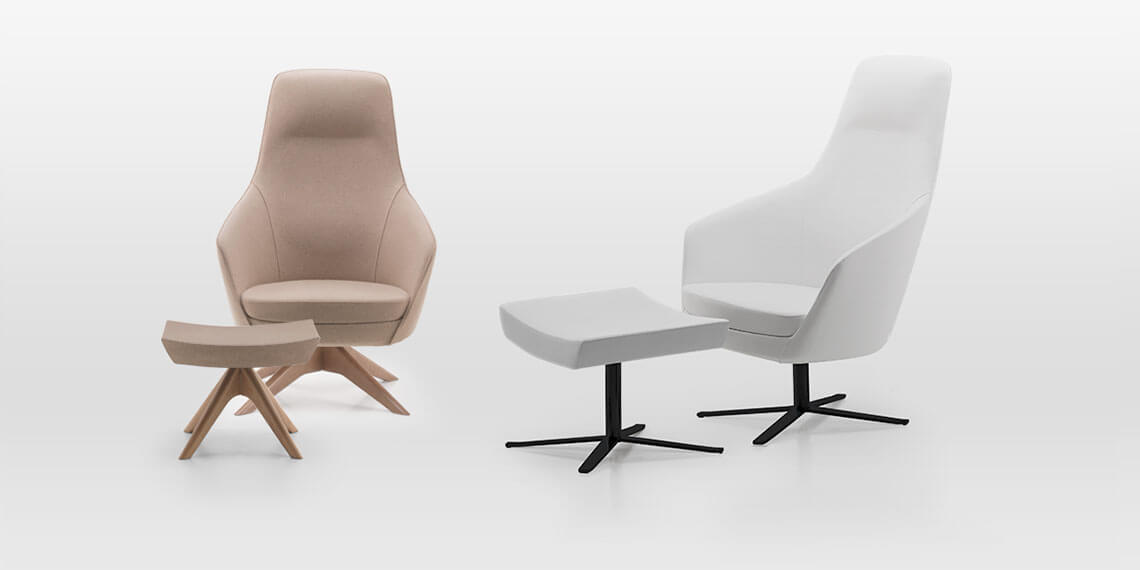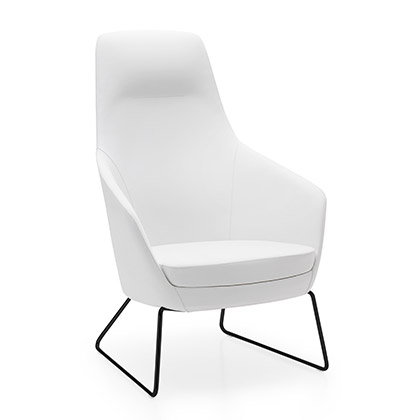 Con estructura de acero, totalmente moldeada en poliuretano inyectado en frío. La mas alta tecnología en fabricación de estructuras y poliuretanos para sillas y sillones de uso contract esta implícita en el sillón Nora respaldo alto.