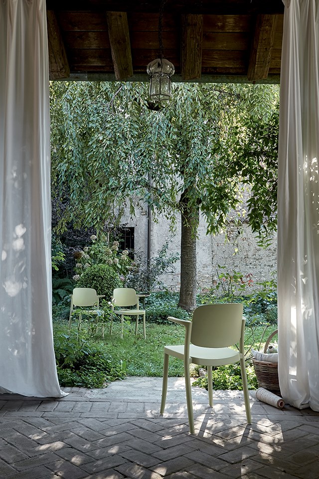 Sin embargo, la versatilidad de Piazza supera a su antecesor de madera; fabricada en una sola pieza de polipropileno, resiste a la intemperie y cualquier tipo de clima.