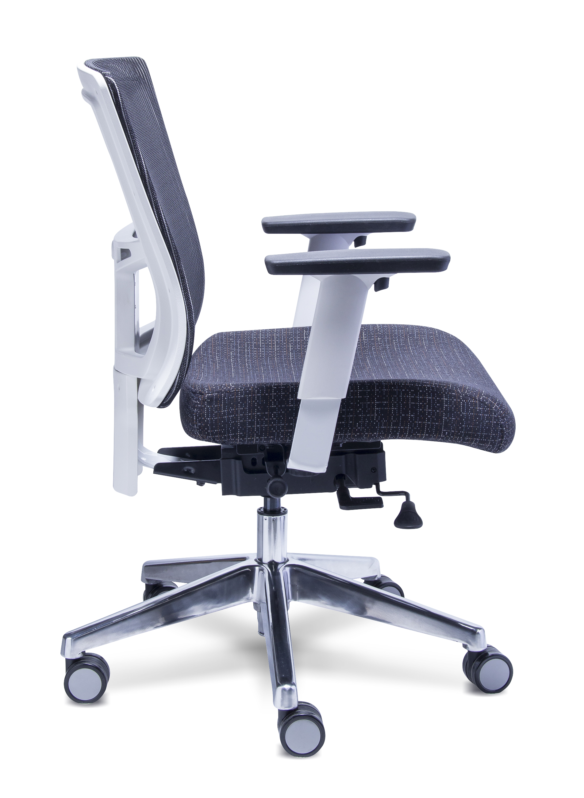 La colección de sillones Quadra ofrece una amplia gama de configuraciones, materiales, colores y sistemas de reclinamiento que la convierten una propuesta ideal para los nuevos espacios y necesidades de trabajo. Una evolución más en el sistema de reclinamiento auto pesante que incluye ajuste de profundidad de asiento por medio de sistema slider.