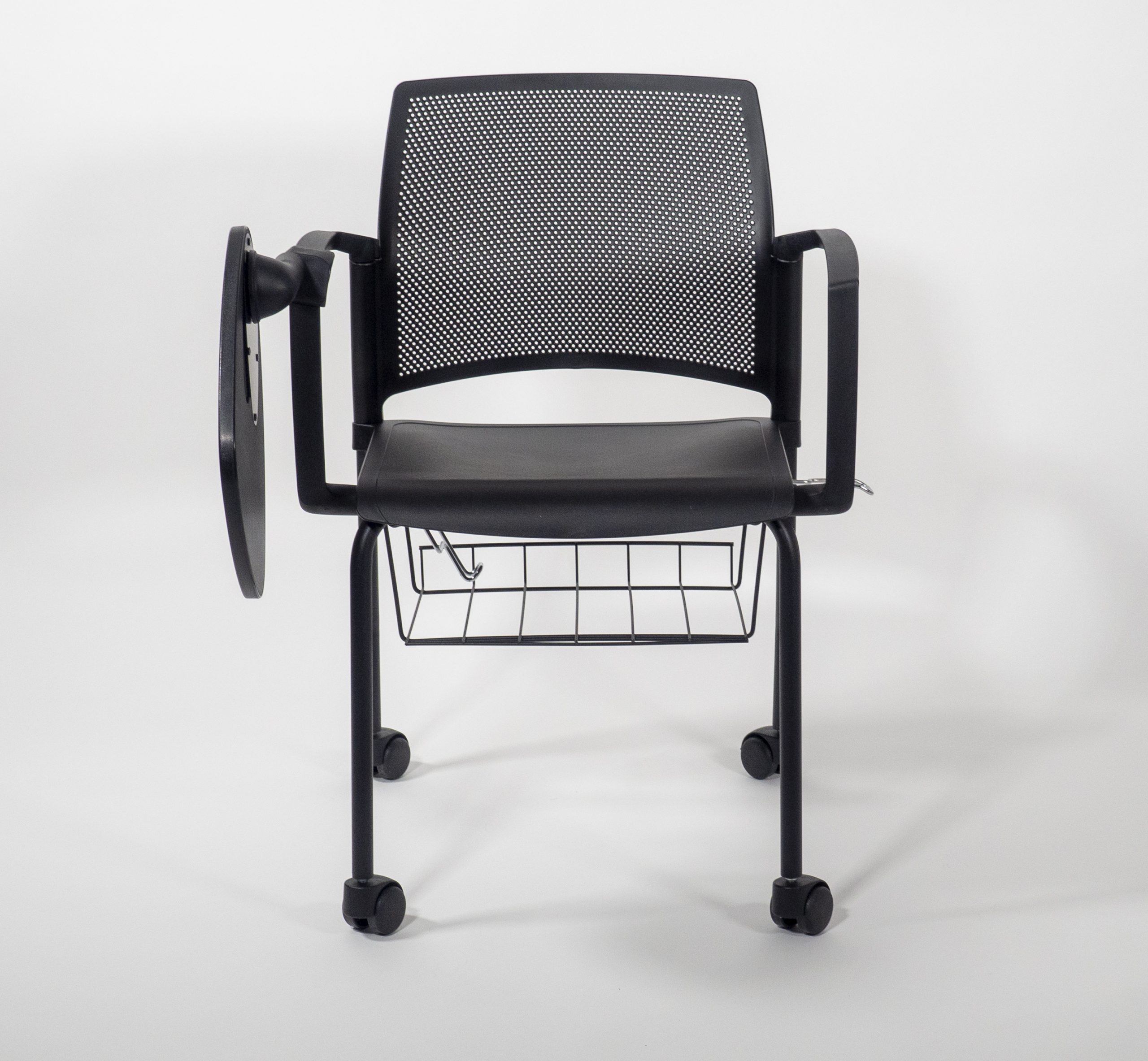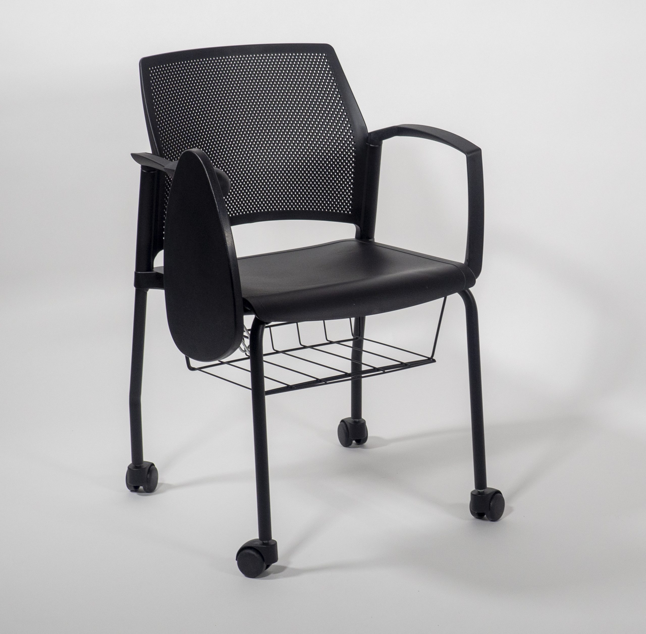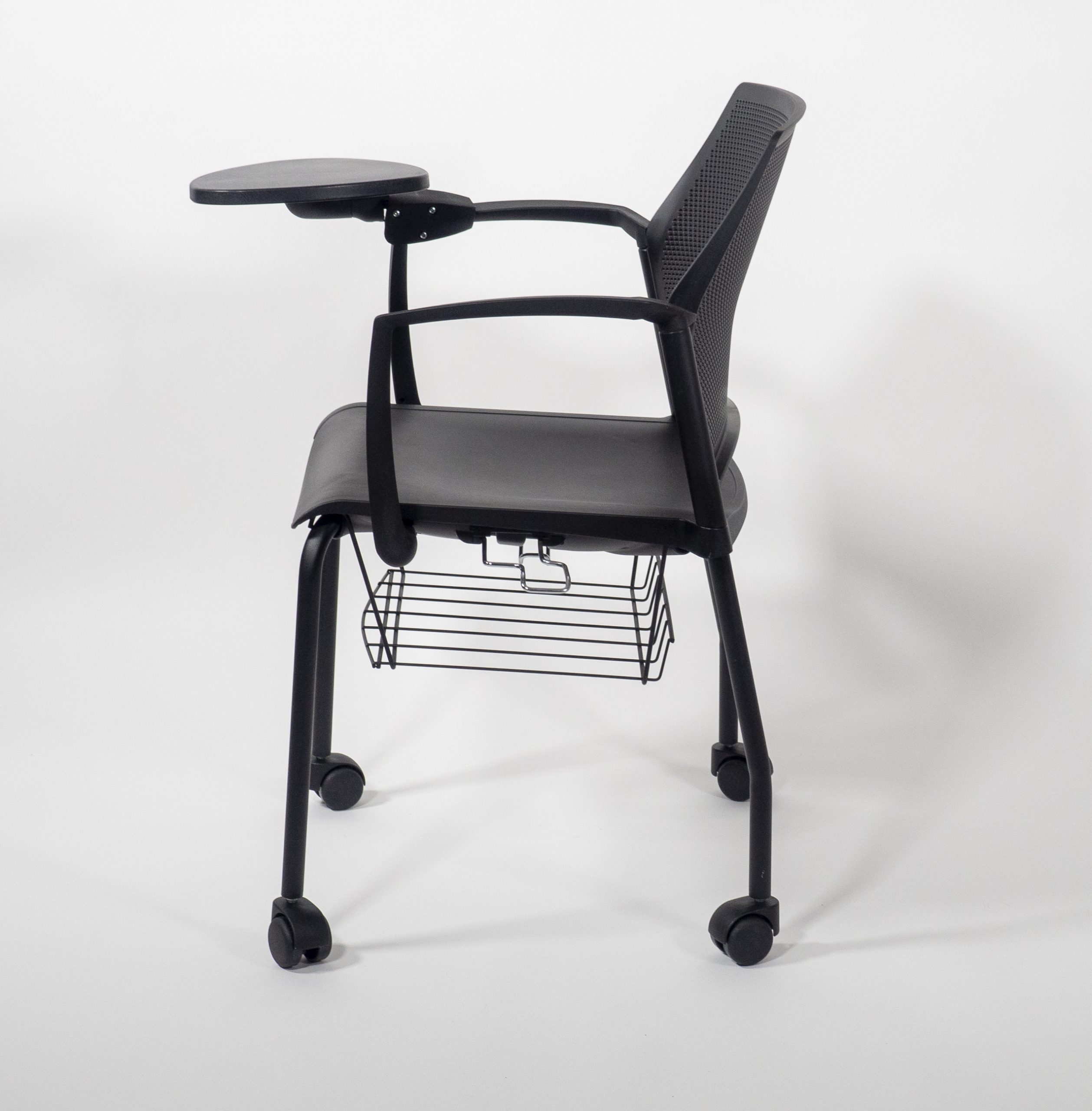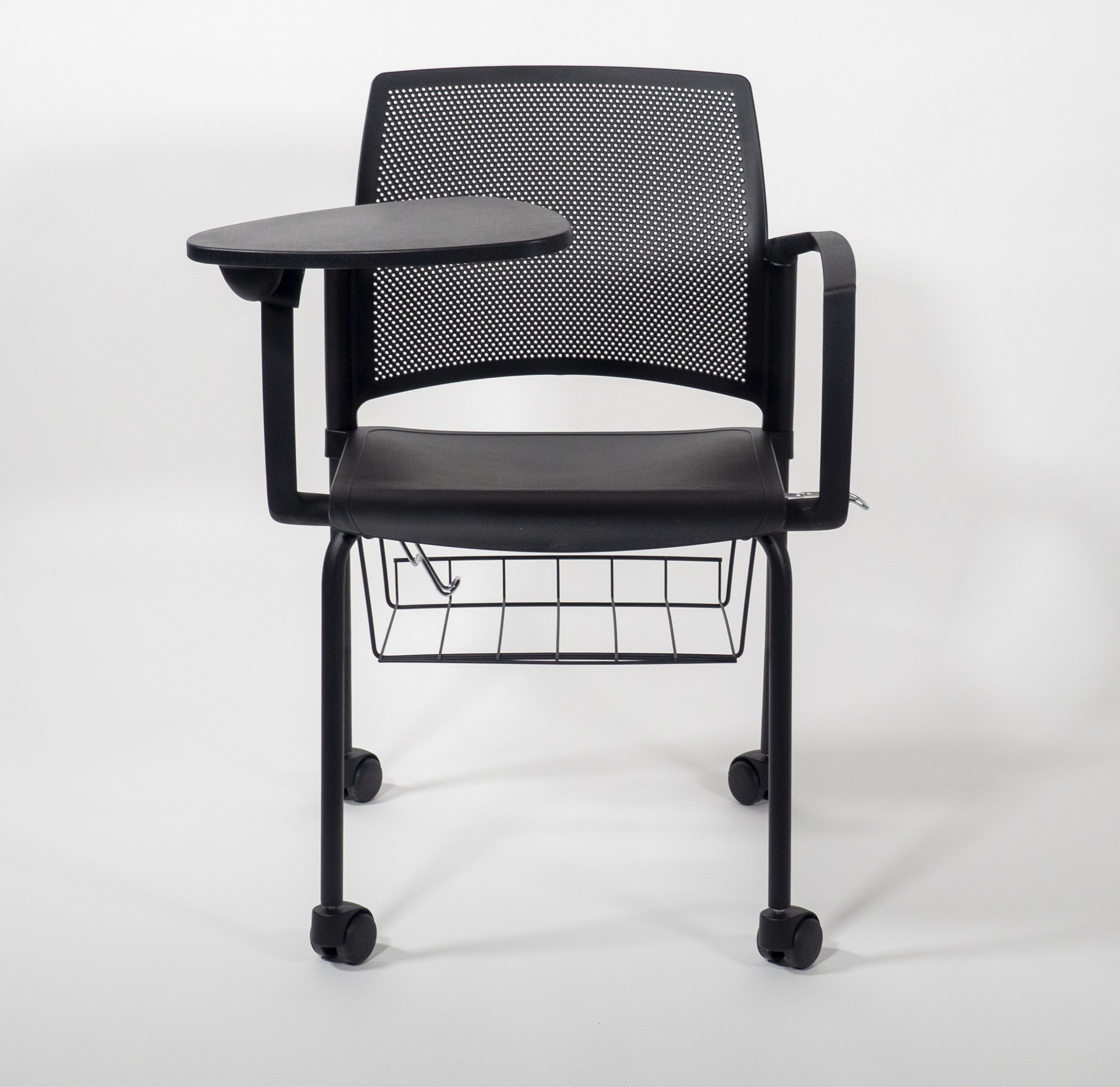 La versión Replay Edu tiene base de 4 puntos y ruedas que incluye: descansa brazos, superficie de trabajo antipánico en color negro y canastilla metálica cromada o pintada en negro o blanco. Los colores de la silla son los mismos que la versión Replay original.