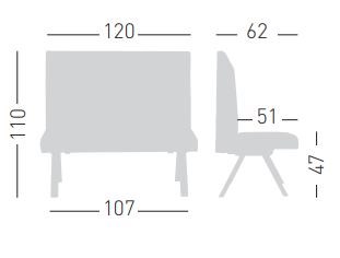 Una sola medida para diseñar tu configuración : 120cm largo, 51cm profundidad asiento – 62cm profundidad total, 47cm altura asiento, 110cm altura total.