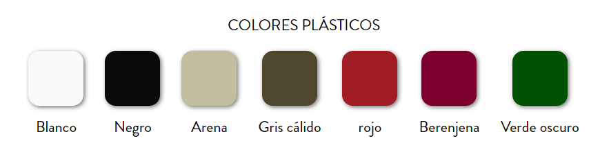 BLANCO, NEGRO, ARENA, GRIS CALIDO, ROJO, BERENJENA, VERDE OBSCURO