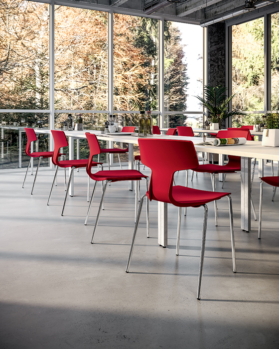Split  es una silla de dos piezas, el caparazón es más suave y flexible, mientras que la base es rígida, como resultado, la silla es cómoda donde se requiere confort y fuerte donde se requiere firmeza.