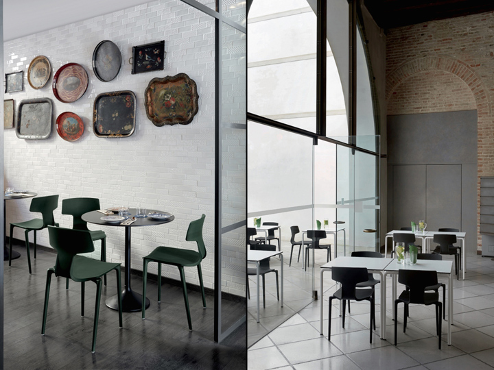 Split es una silla de dos piezas, el caparazón es más suave y flexible, mientras que la base es rígida, como resultado, la silla es cómoda donde se requiere confort y fuerte donde se requiere firmeza. El uso de materiales se reduce al mínimo, otorgando a Split ligereza física y óptica, por lo tanto, una mirada de cerca revelará lo que tiene que ofrecer.
