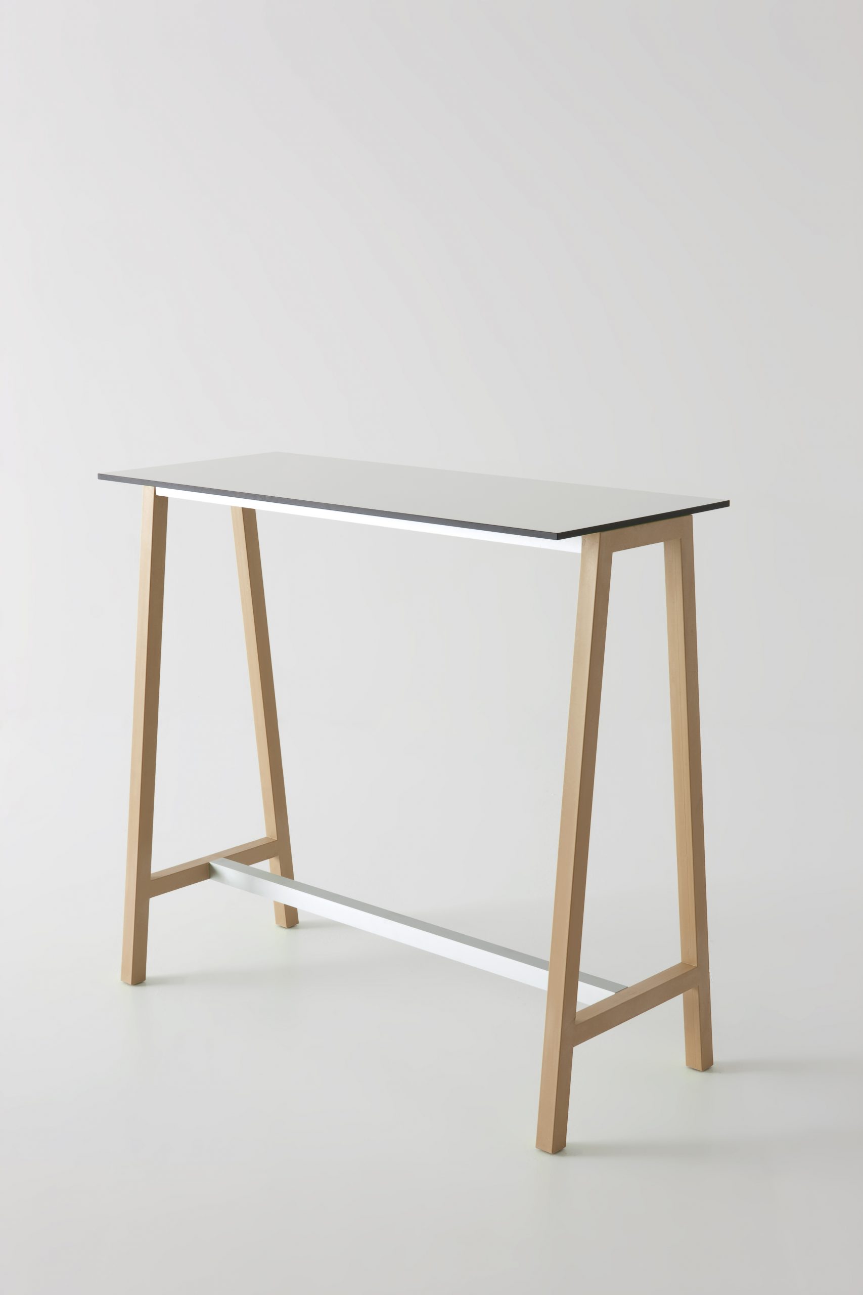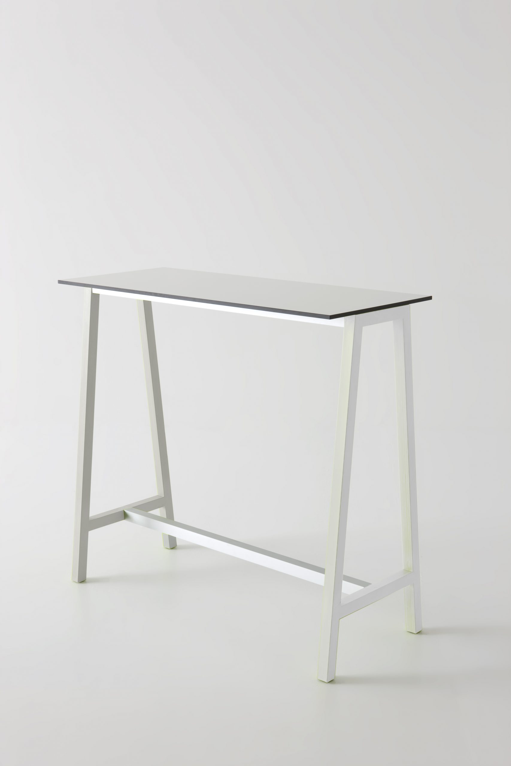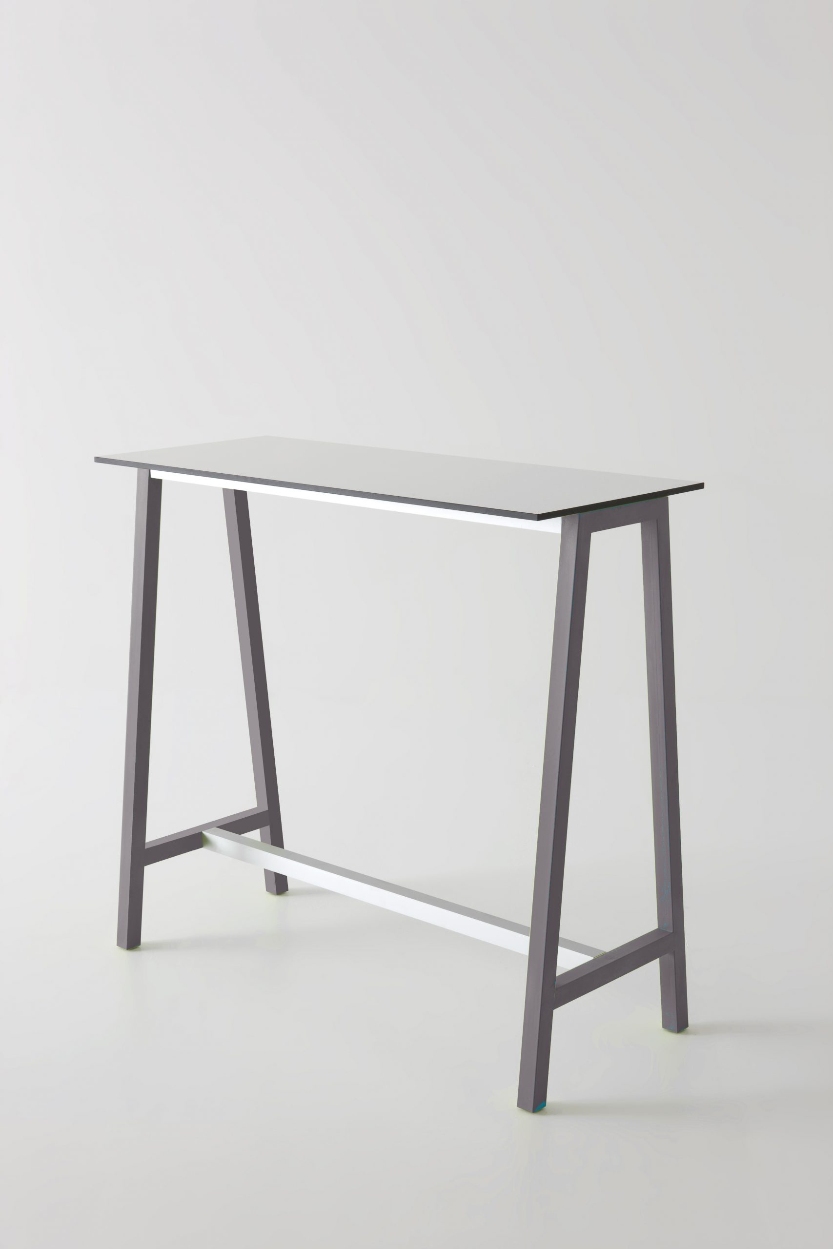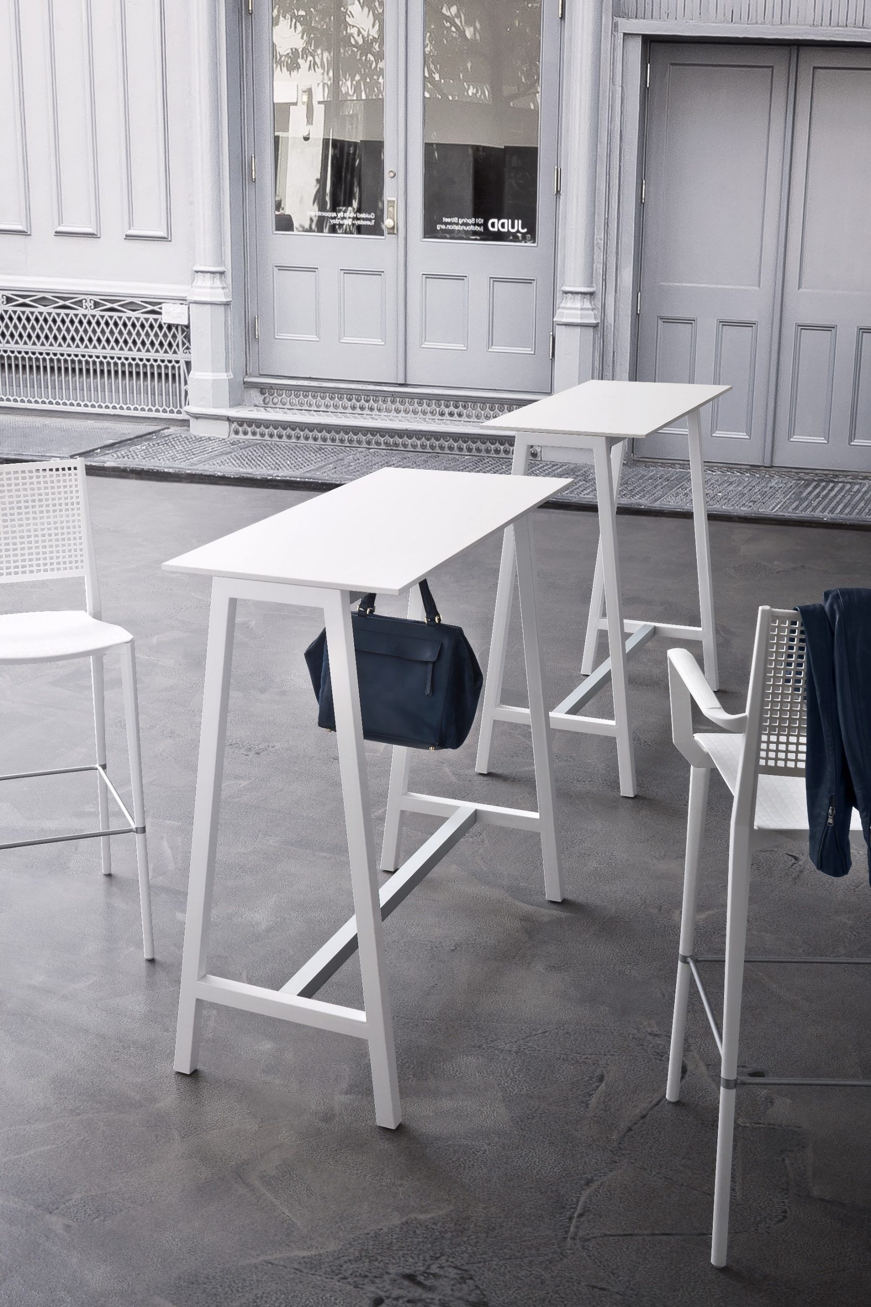 Step es una mesa alta con estructura de metal co-inyectado con tecnopolímero. 100% adecuada para uso al aire libre. Cuenta con un accesorio que se coloca bajo cubierta para colgar la bolsa o articulo similar.