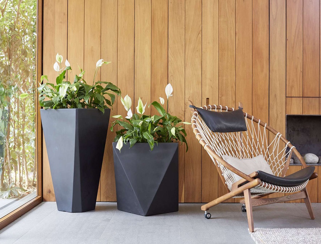 Trapeze 90: Altura 90 cm./ Boca: 50X50cm./ Base: 32cm.